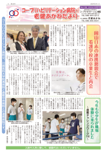 - ・岡山日赤の連携懇親会で看護学校の卒業生と再会 コープリハビリテーション病 院長 鍛本真一郎